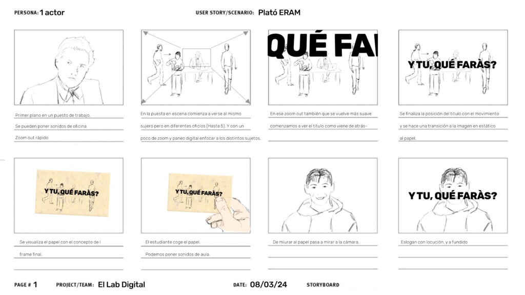 Per a la setmana de portes obertes al curricular escolar a Catalunya la Generalitat departament d’educació, va fer unes campanyes a nivell de xarxes que donessin a conèixer oficis i gremis menys comercials o coneguts, per incentivar la formació de nous professionals d’aquests sectors. Es tractava d’un clip curt i directe, amb recopilació de curts visuals per a les campanyes.