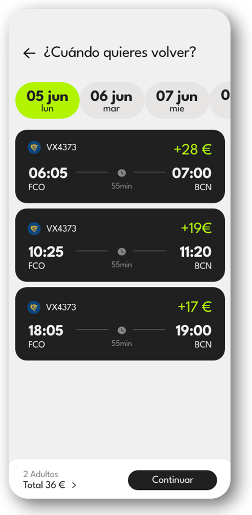 Desenvolupament d’una APP de venda i reserva de seients buits darrera hora. Aquesta aplicació va ser desenvolupada a React Native per a dispositius Android i iOS. Per al backend, Node.js s’utilitzarà amb l’ajuda d’Express com a entorn. Es vincula a les API d’Aerolínies i/o GDS per buscar/reservar vols.