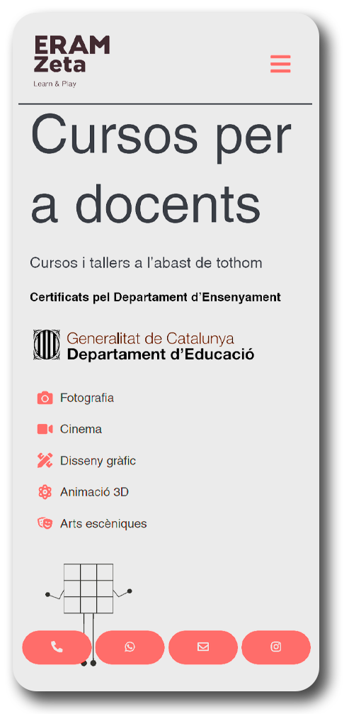 Això és una plataforma web amb multiserveis per poder gestionar i aconseguir conversions més senzilles i digitals dalumnat per a lescola ERAM ZETA. En aquesta pàgina web era necessari diversos espais per als diferents cursos, on el gestor pot actualitzar la informació de cadascun; com també enllaçar-los a una passarel·la de pagament de matriculació, i tenir el control dels alumnes inscrits. Tot ha estat desenvolupat en llenguatge PHP, MySql, HTML, CSS i JSON.